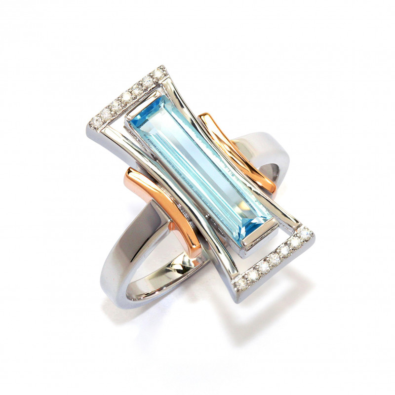 Ring - Blue Topaz/dia. 0,091 Ct. H/si